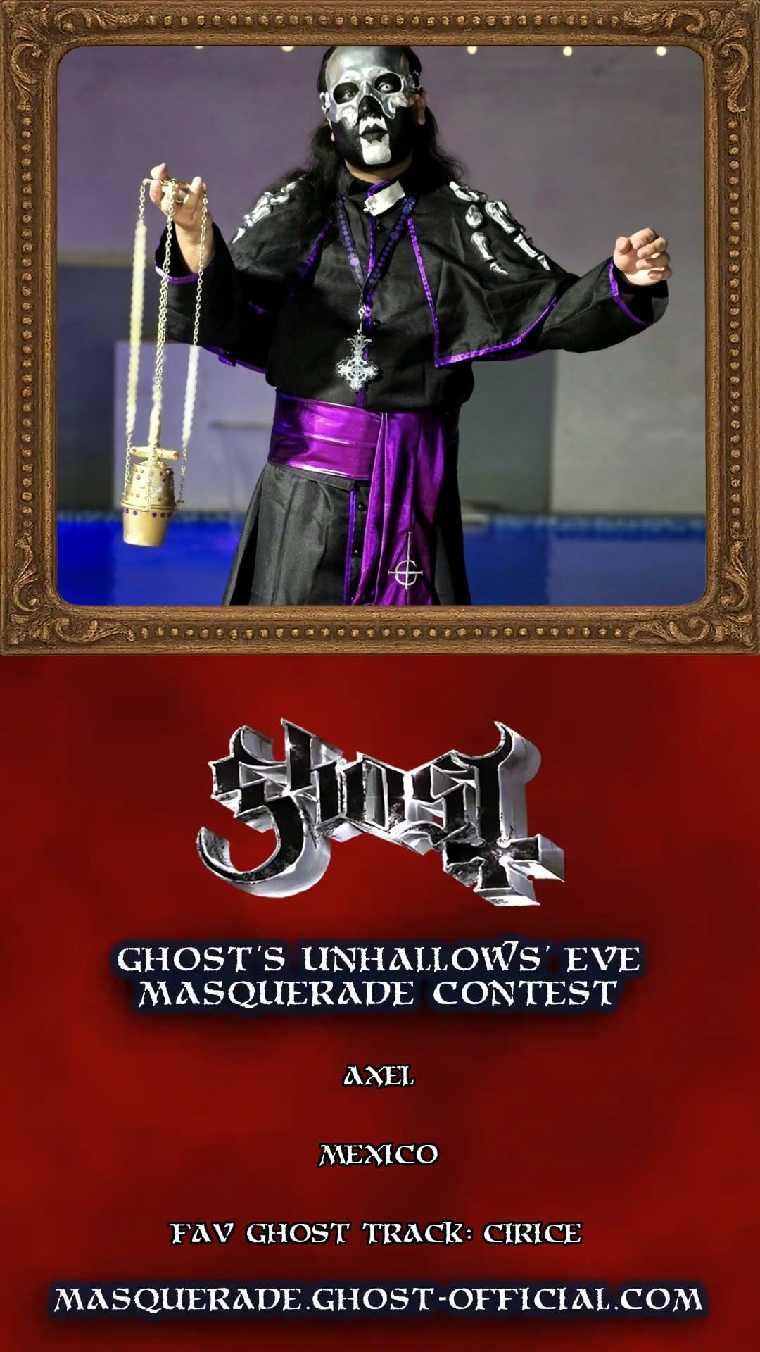 Back to Contestants Axel Location:MexicoWhy I SHould Win:I really love Ghost, it's my favorite band, means a lot to me and idk just wanted to flex my Perpetua CosplayFavorite Ghost Track:Cirice Email to verify: Send verification link You are verified to vote. Just click the button below. Vote Download Share Image Privacy PolicyCookie PolicyTermsAccessibility StatementDeclaration of Rights ReservationMoria Citadel font used with kind permission from designer Russ Herschler© 2025 Loma Vista Recordings