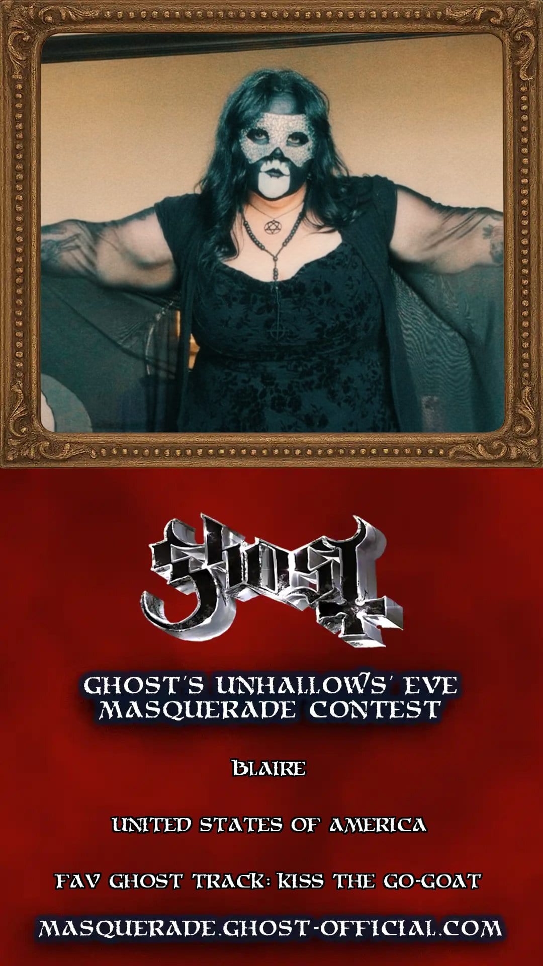 Back to Contestants Blaire Location:United States of AmericaWhy I SHould Win:I don’t know if I’m good enough to win but I love Ghost and wanted to participate. Favorite Ghost Track:Kiss the go-goat Email to verify: Send verification link You are verified to vote. Just click the button below. Vote Download Share Image Privacy PolicyCookie PolicyTermsAccessibility StatementDeclaration of Rights ReservationMoria Citadel font used with kind permission from designer Russ Herschler© 2025 Loma Vista Recordings