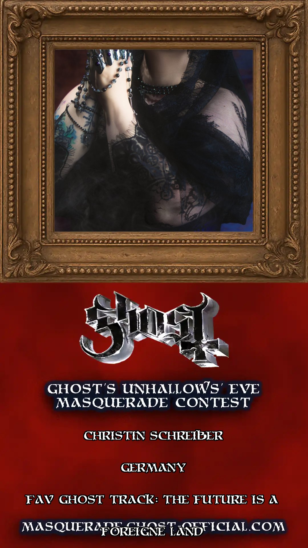 Back to Contestants Christin Schreiber Location:GermanyWhy I SHould Win:Because I love Ghost and i already have 6 Ritual Ready Outfits ♡♡♡Favorite Ghost Track:The Future Is A Foreigne Land Email to verify: Send verification link You are verified to vote. Just click the button below. Vote Download Share Image Privacy PolicyCookie PolicyTermsAccessibility StatementDeclaration of Rights ReservationMoria Citadel font used with kind permission from designer Russ Herschler© 2025 Loma Vista Recordings