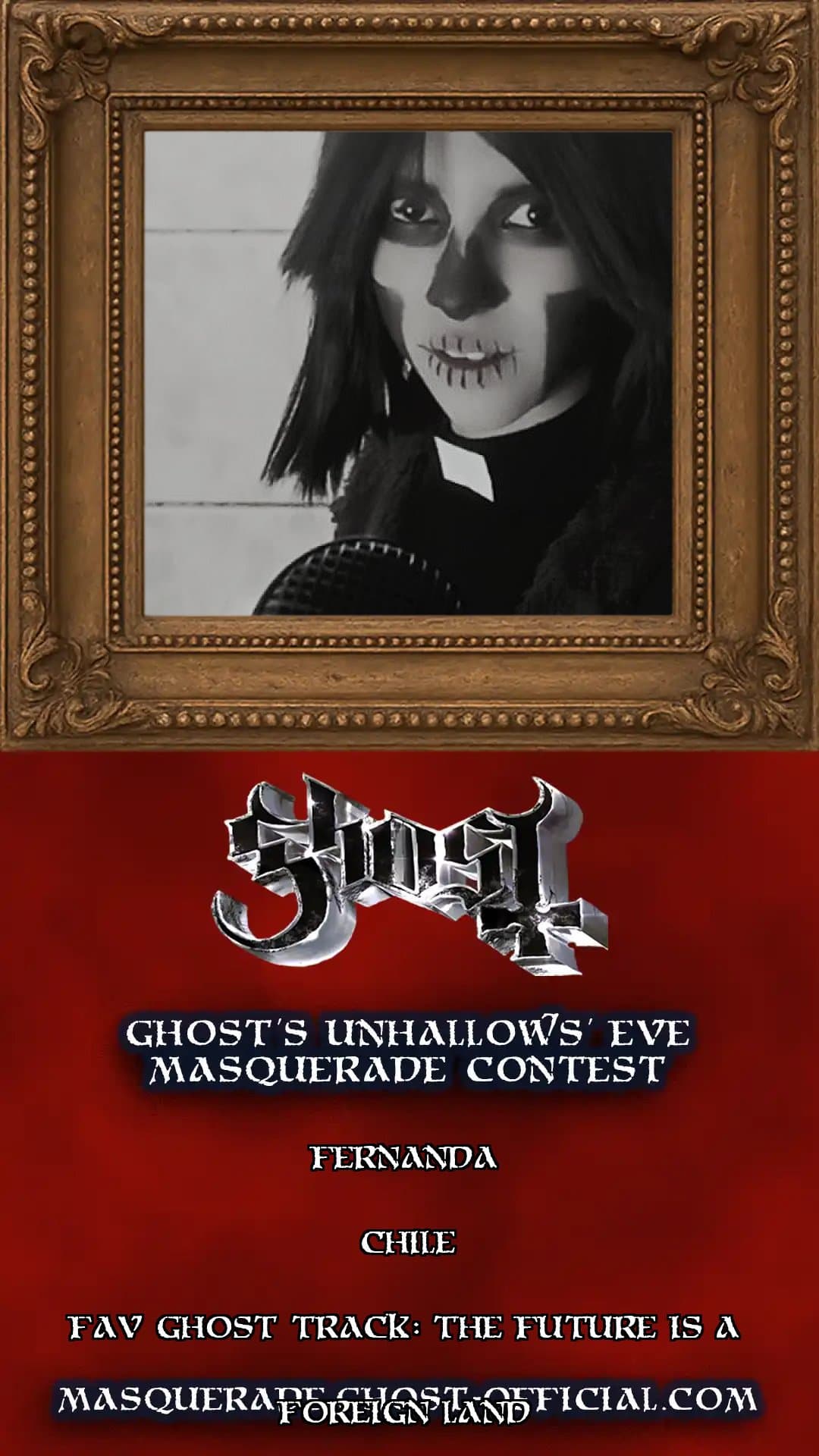 Back to Contestants Fernanda Location:ChileWhy I SHould Win:El 29 de octubre es mi cumpleaños y cumplo los 19 seria un gran regalo de cumpleaños 🩶Favorite Ghost Track:The Future Is A Foreign Land Email to verify: Send verification link You are verified to vote. Just click the button below. Vote Download Share Image Privacy PolicyCookie PolicyTermsAccessibility StatementDeclaration of Rights ReservationMoria Citadel font used with kind permission from designer Russ Herschler© 2025 Loma Vista Recordings