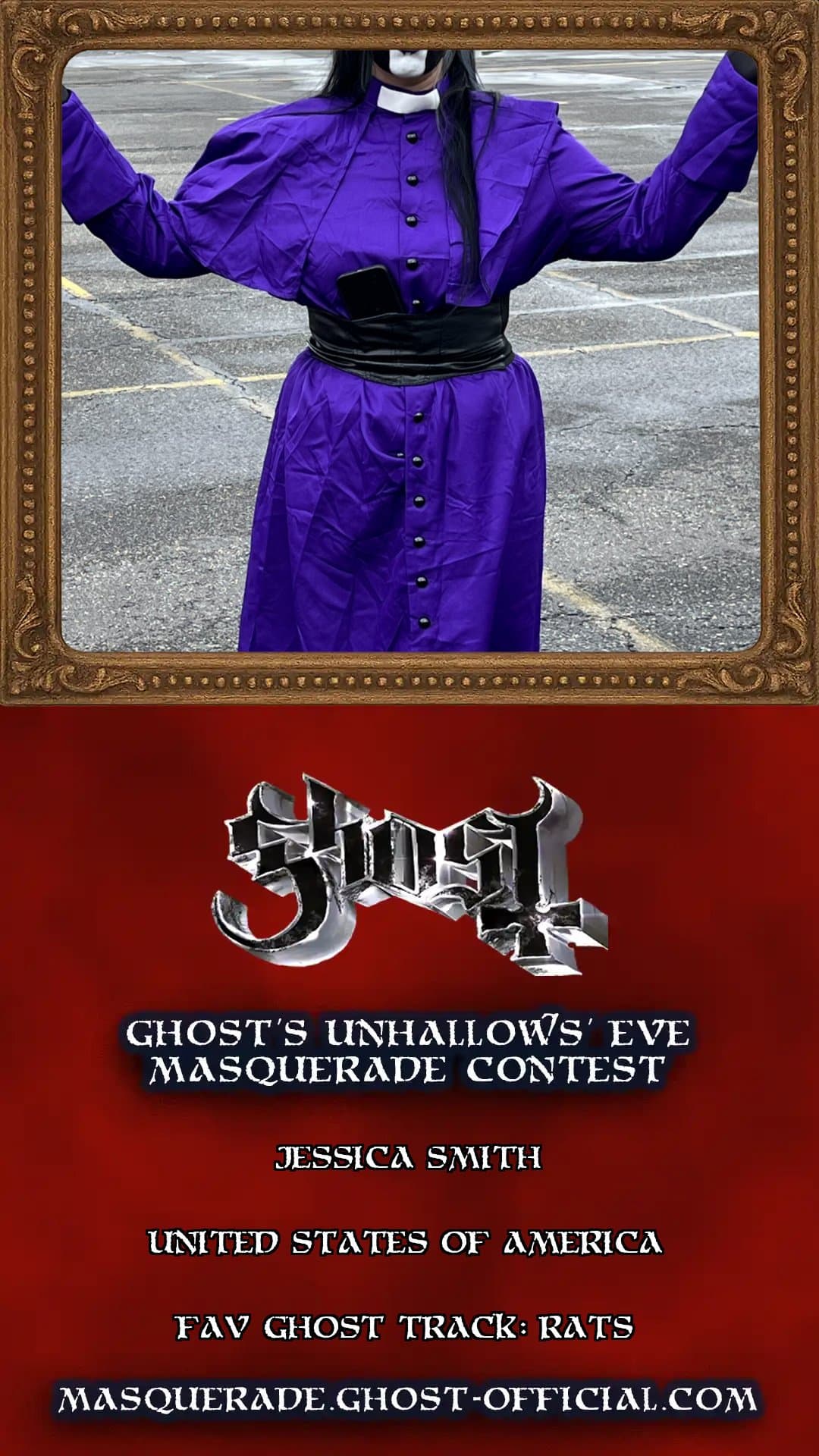 Back to Contestants Jessica Smith Location:United States of AmericaWhy I SHould Win:Ghost is my number one band out of the millions on this planet. My dad even got a tattoo of Papa II:)Favorite Ghost Track:Rats Email to verify: Send verification link You are verified to vote. Just click the button below. Vote Download Share Image Privacy PolicyCookie PolicyTermsAccessibility StatementDeclaration of Rights ReservationMoria Citadel font used with kind permission from designer Russ Herschler© 2025 Loma Vista Recordings