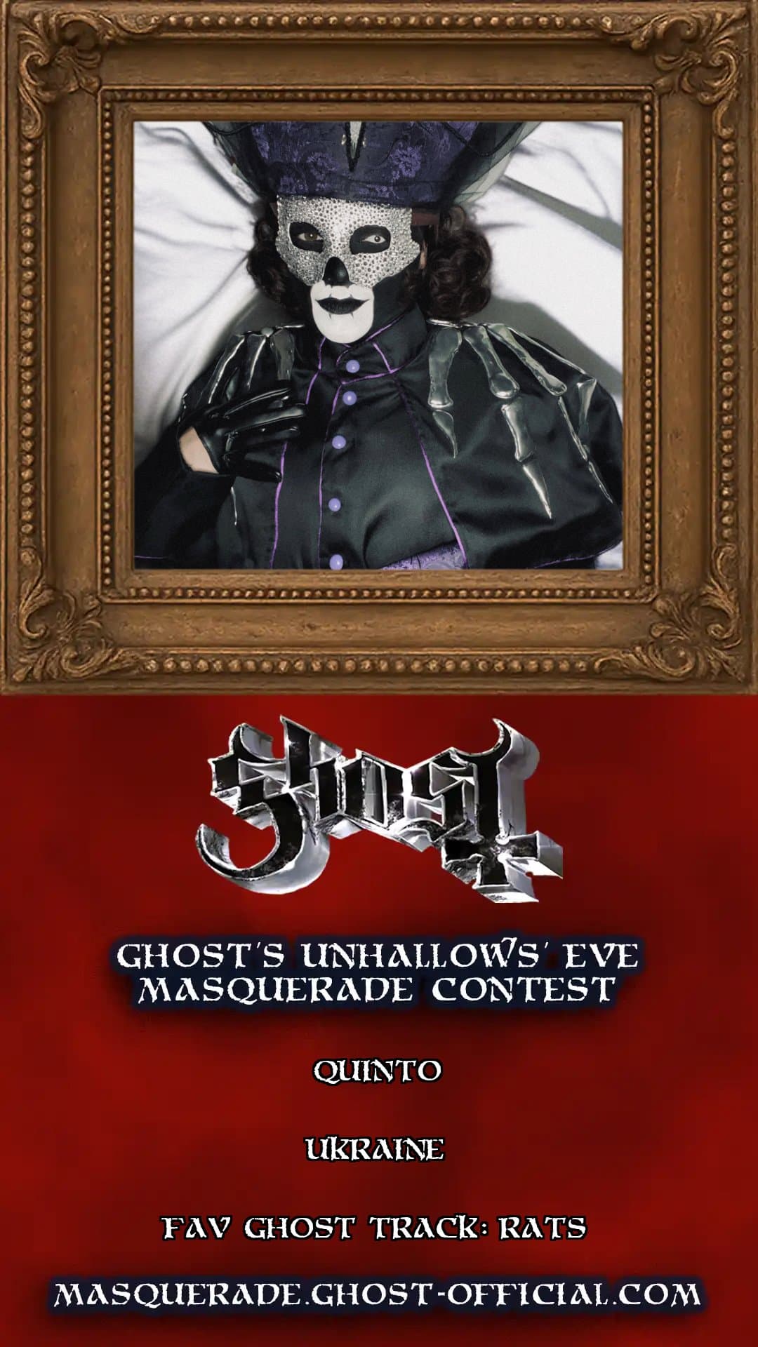 Back to Contestants Quinto Location:UkraineWhy I SHould Win:I've been working on this costume for a long time and I want it to get some attention!Favorite Ghost Track:Rats Email to verify: Send verification link You are verified to vote. Just click the button below. Vote Download Share Image Privacy PolicyCookie PolicyTermsAccessibility StatementDeclaration of Rights ReservationMoria Citadel font used with kind permission from designer Russ Herschler© 2025 Loma Vista Recordings
